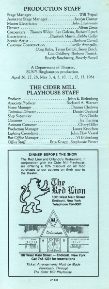 Theater Dept. Productions at the Cider Mill Playhouse 1976-1991